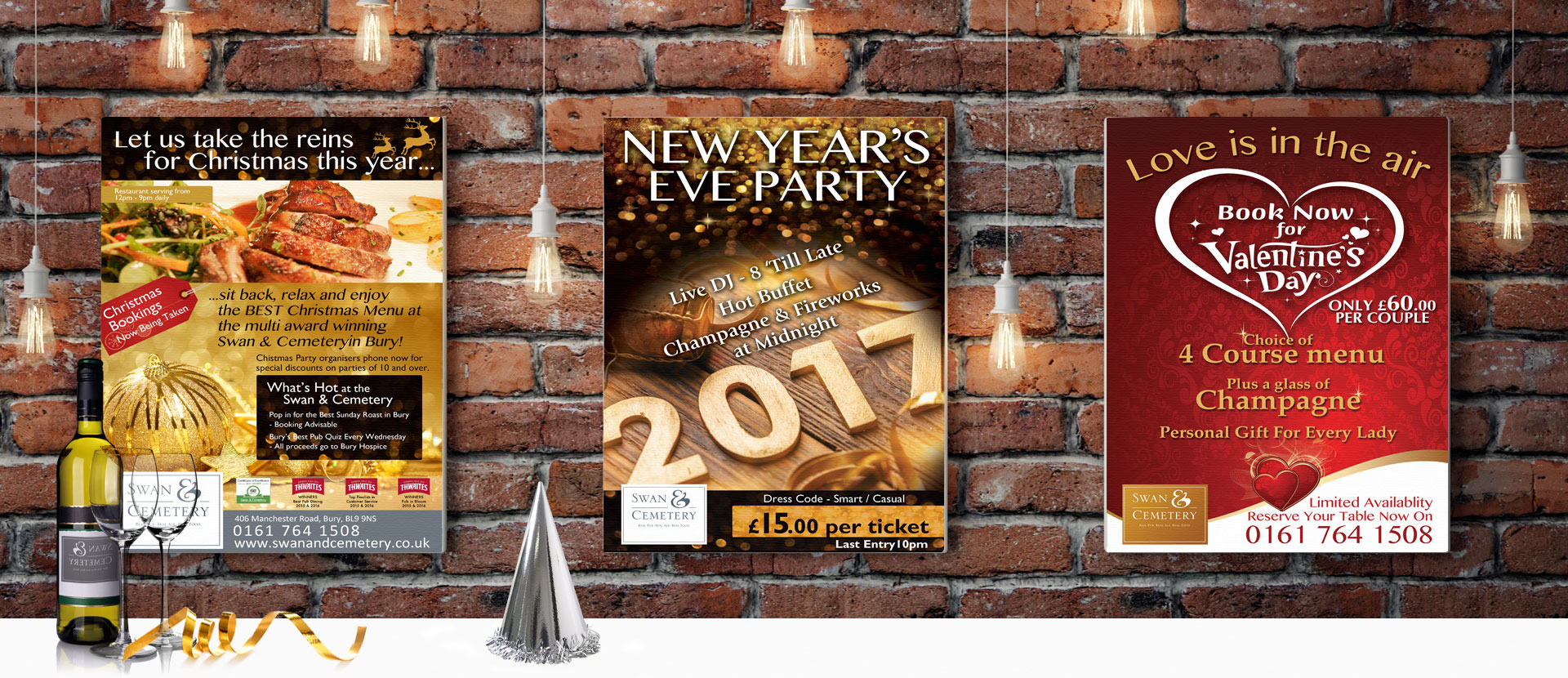 impact creative’s bar-top flyers, printed posters and banners, all ensure the Swan & Cemetery remains the customers’ first choice when it comes to celebrating those special days.