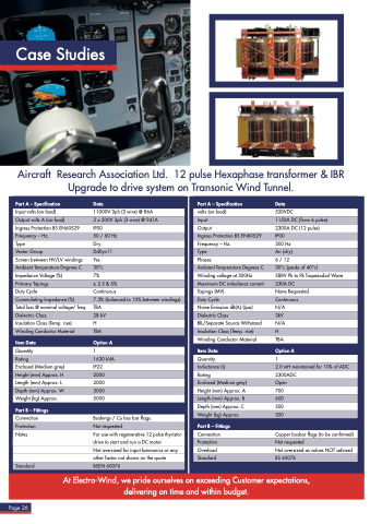 Aircraft Research Association Ltd. 12 pulse Hexaphase transformer & IBR Upgrade to drive system on Transonic Wind Tunnel.