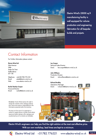Telephone. +44 (0)1782 776 321 Email. sales@electro-wind.co.uk Web www.electro-wind.co.uk